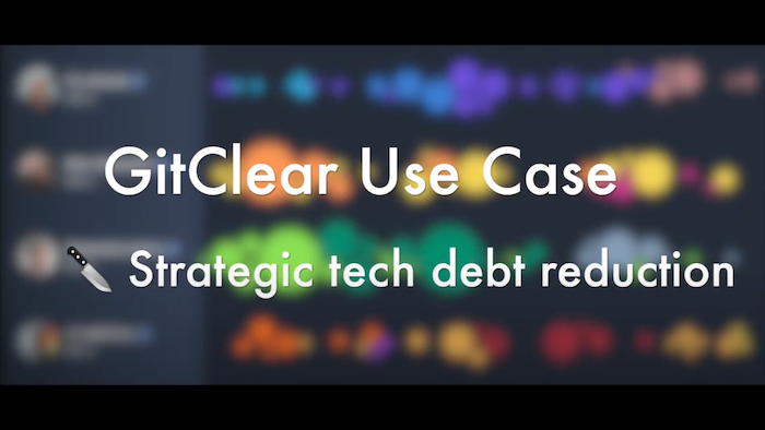 This 14 minute video covers Diff Delta, the Commit Activity Browser, how to accelerate developer onboarding, pull request collaboration stats, how to run experiments with the "Velocity" tab, and how to use GitClear to reduce tech debt.