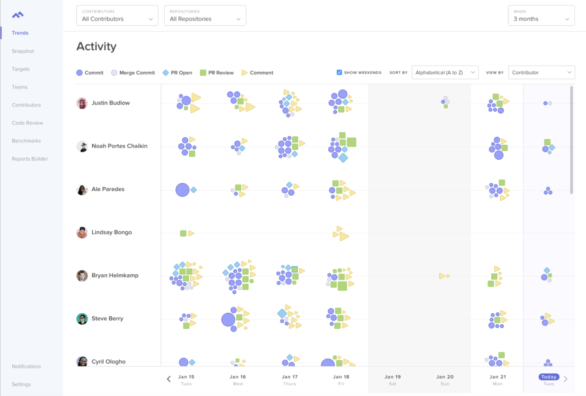 If Waydev goes on to publish more pages describing how their code processing works (in their own words), then the attention dedicated to them may increase. At present, their differentiation amounts to one of price. You'll pay about $1,250/month for a team of 50 on Waydev, but we would recommend taking a long look at the data quality before treading these waters. Misleading engineering data can cause strife among developers and drive business decision-making that spawns from a misleading premise (i.e., noisy data).